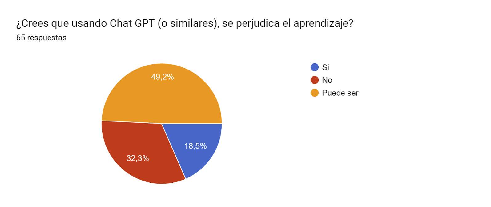 Una vez trabajado el concepto de tecnologías digitales desde una perspectiva crítica, la pregunta se orientó hacia los usos y prácticas vinculadas a las IA en su vida estudiantil. De allí surgió la preocupación por el impacto del uso del chat gpt, específicamente, en sus trayectorias. Y surgió la idea de realizar una encuesta para circular entre las y los estudiantes de todos los profesorados y tecnicaturas del Instituto. El grupo de estudiantes decidió hacer un formulario que incluya también situaciones de la vida cotidiana para obtener información acerca de cuánto saben sus pares y quienes habitan el instituto sobre la presencia de inteligencia artificial en su vida y cómo funciona. El formulario circuló por el instituto y fue respondido por 65 estudiantes.